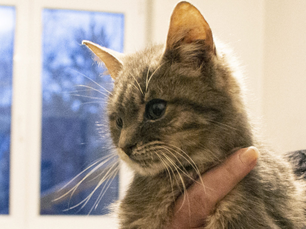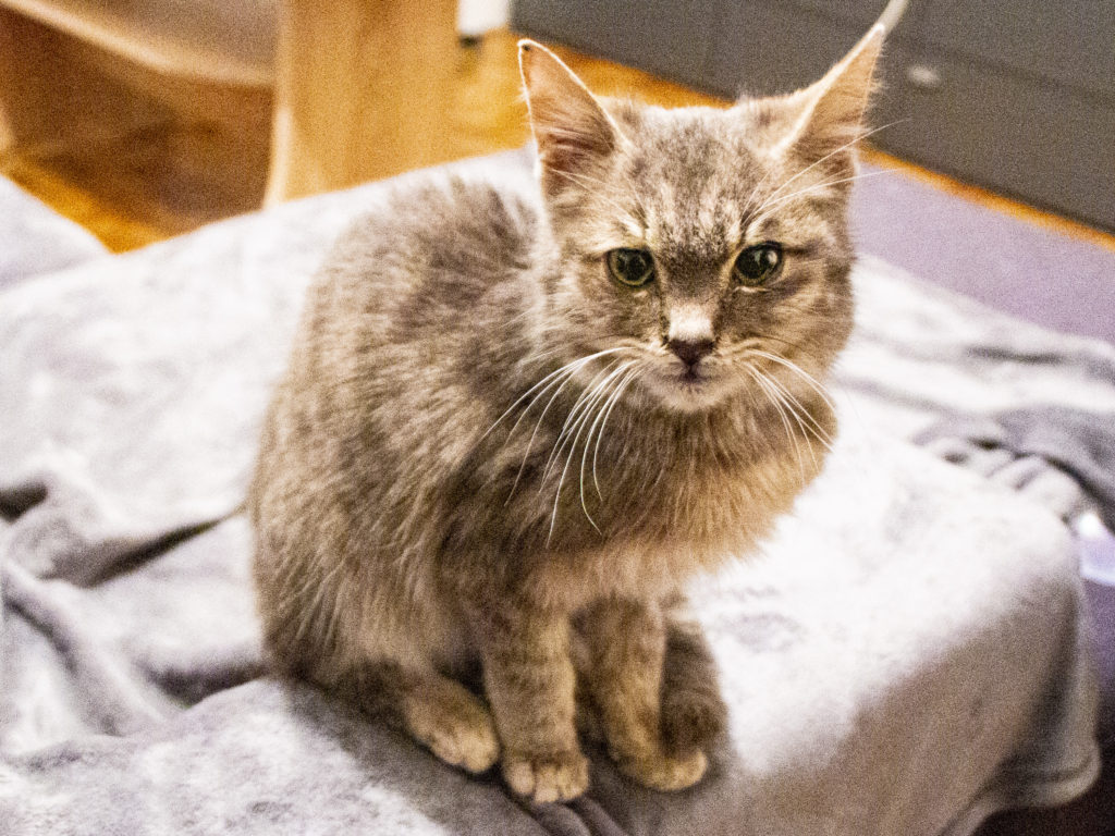 Jsem maličký mourovatý kočičí chlapeček, asi 4 měsíce starý. 🐱Teď už jsem zdravý, ale musím hodně papat, abych trošku přibral a zesílil.