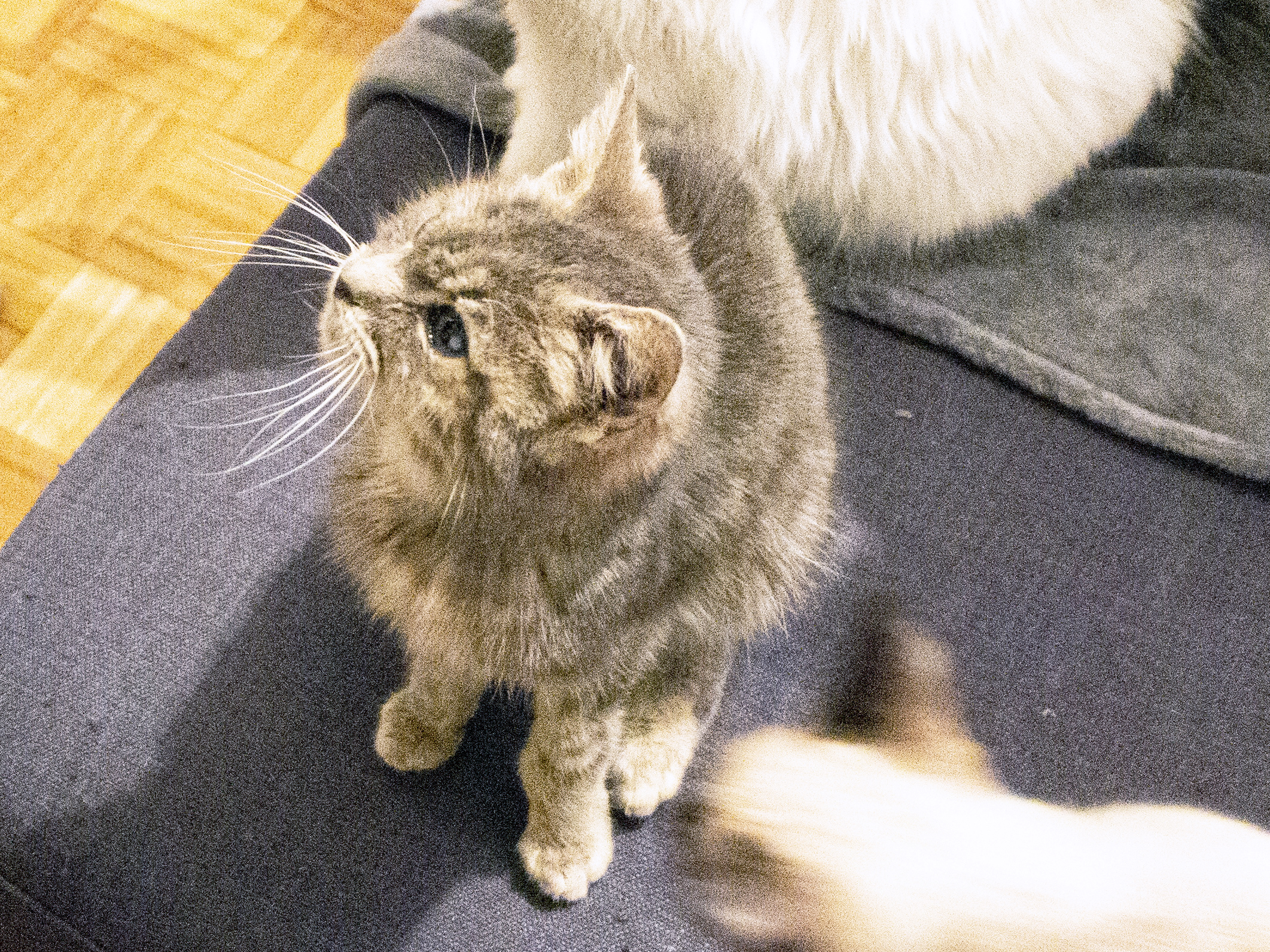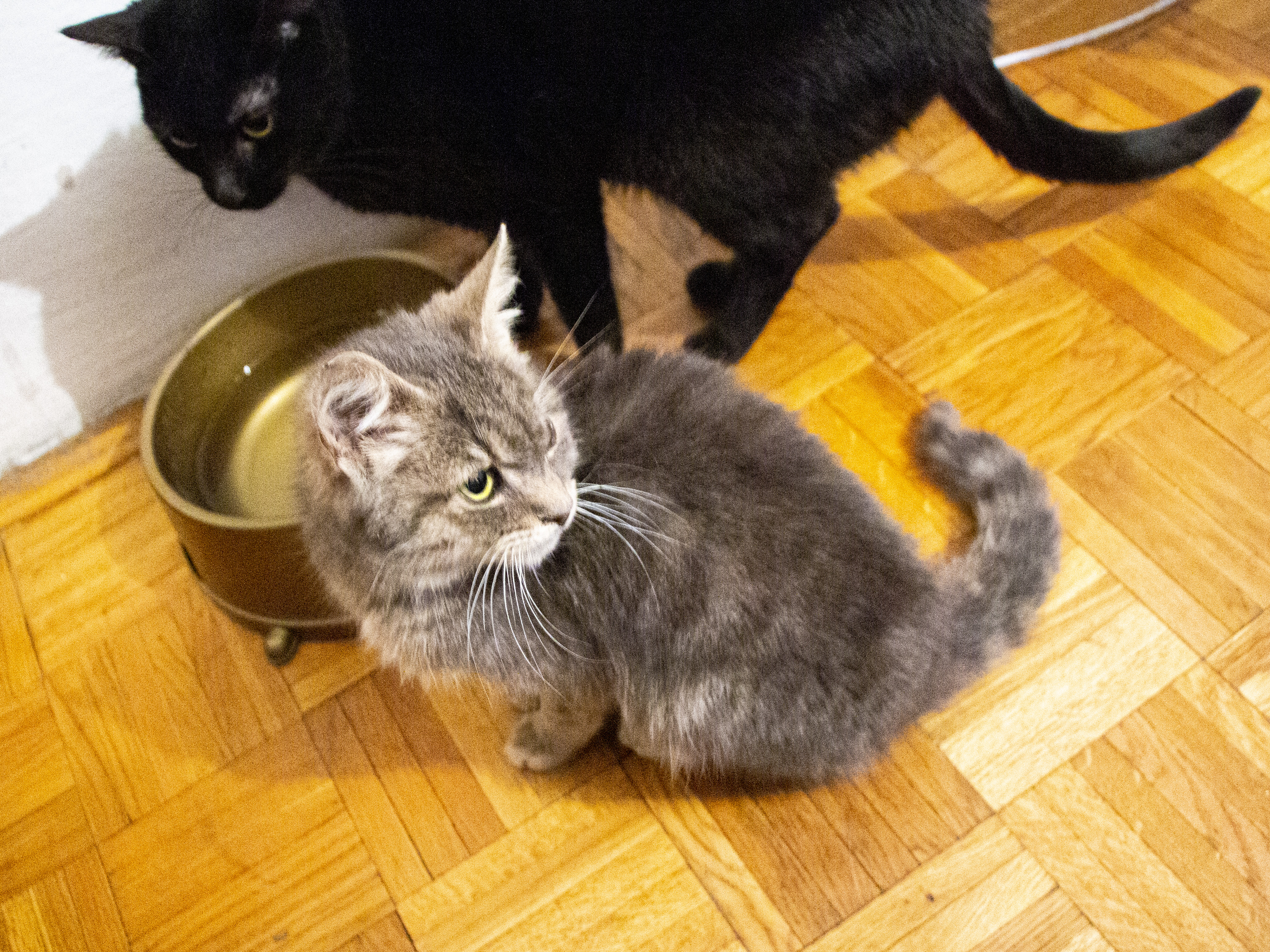 Že už jsou s kočičkami jedna parta svědčí i to, že mámu vždy svorně čekají všichni tři, když přijíždí z práce domů.