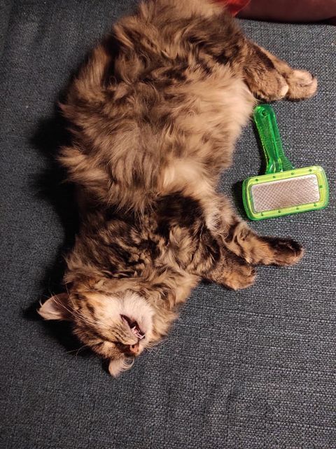 Nemá problém ani s menším cestováním. Přes Vánoce jsme ji vzali za rodinou a na všechny udělala dobrý dojem. Ráda se nechá česat, hladit a rozmazlovat kapsičkama.