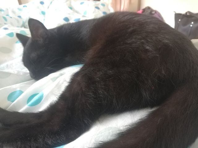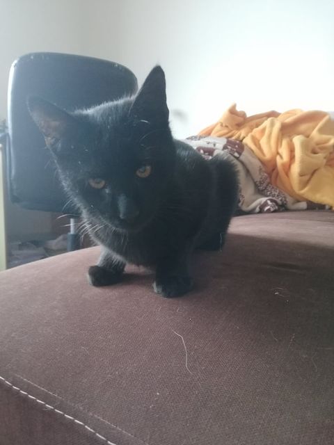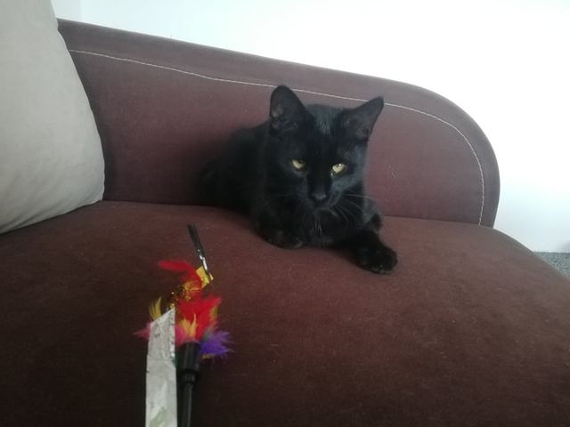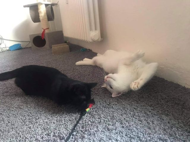 „Kocourek Hermelín si u nás pěkně zvykl, je to zvědavec a hned to všude musel prozkoumat. Pak se seznámil s naším kocourem, který na něj nejdříve syčel a prskal, ale tak po jednom dni si na sebe zvykli a už tu spolu pěkně řádí. Má neskutečný apetit, když má něco v misce tak pořád papá, taky je to velký mazel.“ ❤️
