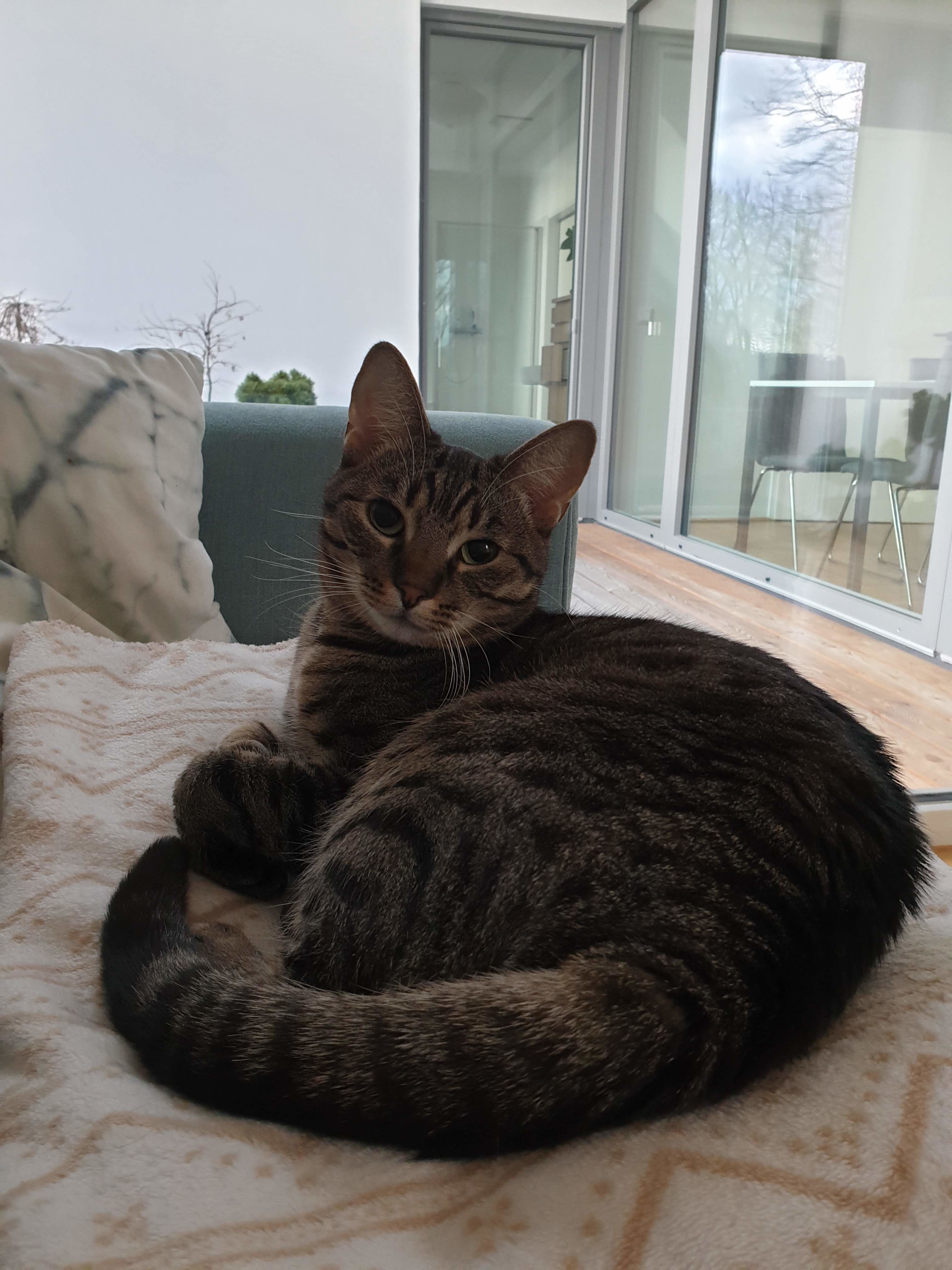 Jsem způsobná mladá dáma, která když si lehne má všechny tlapičky i ocásek pěkně srovnané, ale zároveň jsem roztomilá a jsem miláčkem všech, co mě poznají.