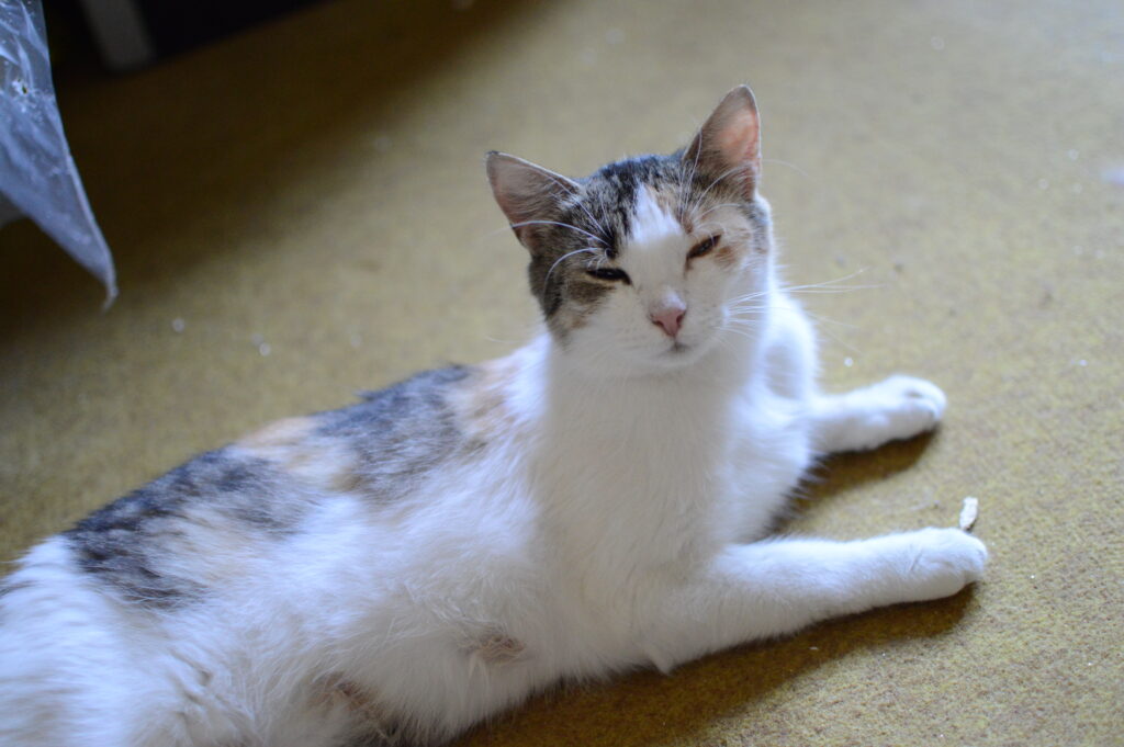 Kočička Laura už od svého narození bojuje se smutným a těžkým osudem. Jako maličká ztratila maminku a protloukala se ulicemi Želechovic, beznadějně prosila o jídlo a domov a ještě v kotěcím věku zabřezla. Byla nalezena hodnou slečnou, které její osud i stav nebyl lhostejný a tak se dostala k nám do dočasné péče, kde se jí narodila tři krásná koťátka. Když už to vypadalo, že se na ni konečně usmálo štěstí a začne hledat svůj domov, zjistilo se, že ona i její dva synáčci Obezík a Jetelínek onemocněli smrtelnou nemocí FIP. Uspořádali jsme sbírku na zakoupení léku, sehnali jej, ale nemoc u slabšího kocourka Jetelínka už byla v tak pokročilém stádiu, že se léčby nedočkal a umřel.