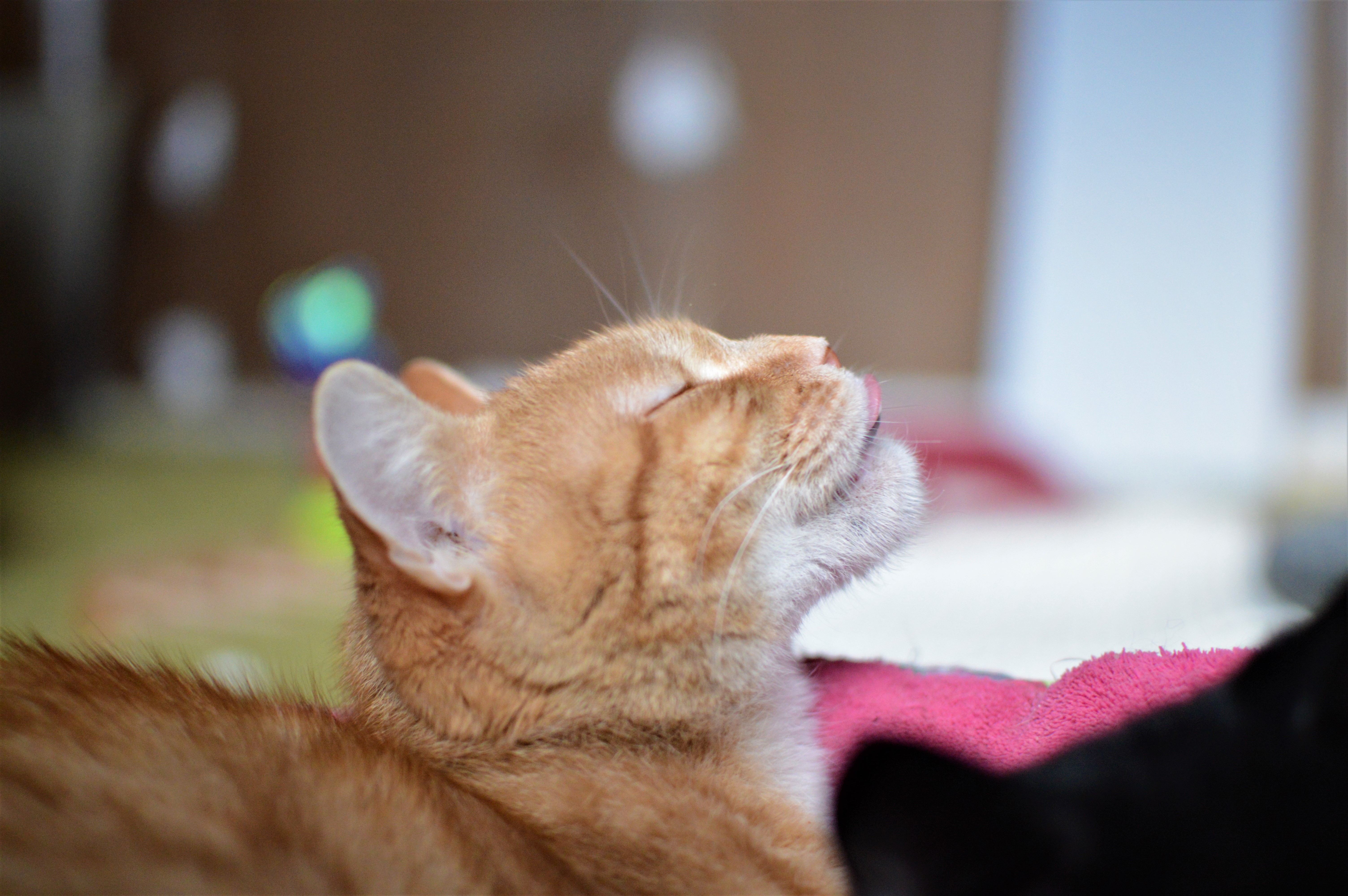 Nejraději odpočívám u nejmladší dvojnožky v posteli. Líbí se mi, když mě šimrá na bříšku a hlavičce, to pak i lehce vrním.