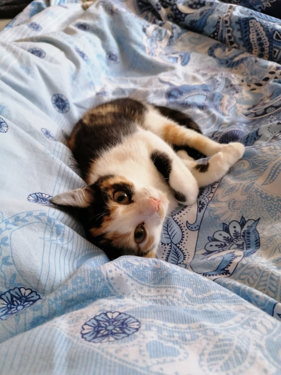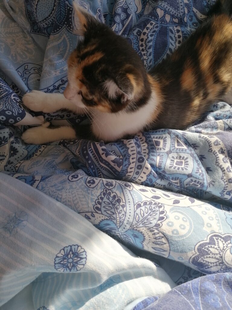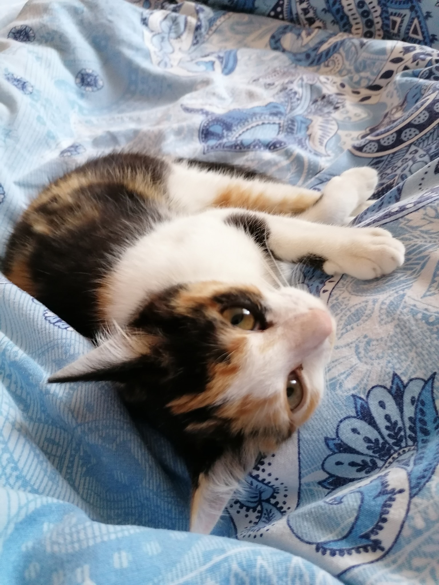Asi tříměsíční Lízinka byla ze začátku velmi nedůvěřivá, taková bojácná kočička, která se bála i svého stínu. Dnes po třech týdnech trpělivosti, mazlení a lásky, je to hravá, veselá kočička která hledá lidskou společnost. 😍