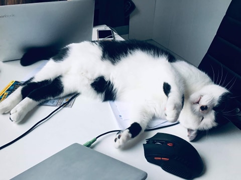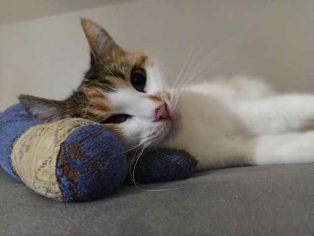 Rodiče si mysleli, že se sám doma nudím, že je mi smutno a tak mi před necelým rokem pořídili, opět z útulku Dobré ruce, kočičí slečnu Miu. Ze začátku to mezi námi skřípalo, ona chtěla být paní domácnosti a miláčkem rodiny a já také, takže žárlivost udělala své. Pak jsem ale přišel na to, že Mia je vlastně fajn holka a taky pěkná krasavice a tak se už máme rádi 😻, hrajeme si spolu a když začneme běhat, tak prý to vypadá, jako by jsme místo tlapek měli kopýtka.