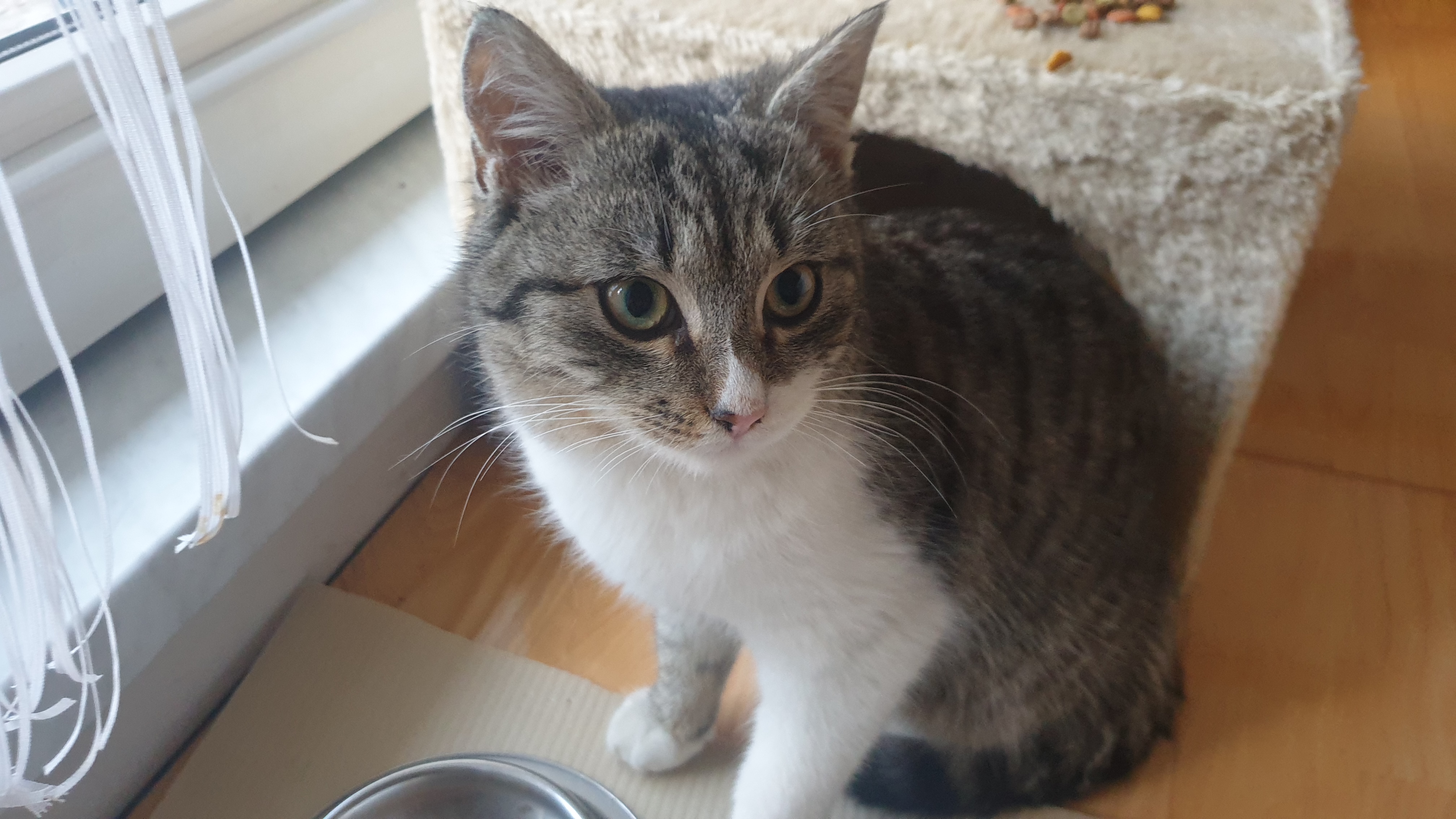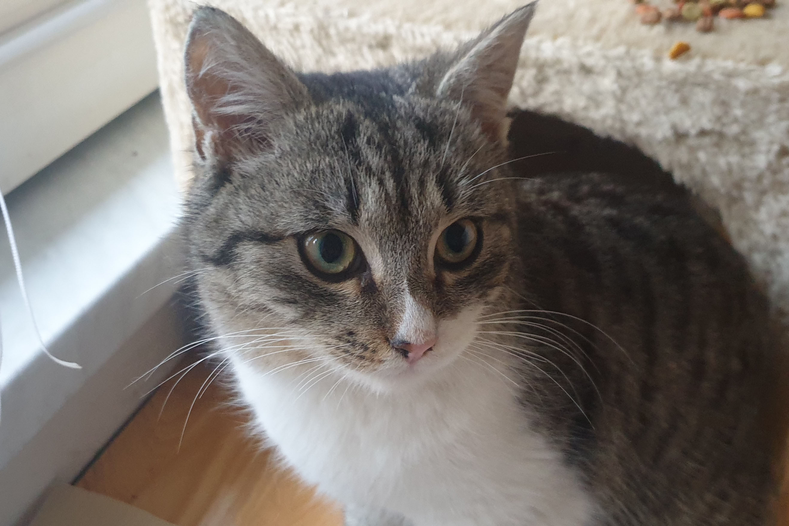 Kočičku Míšu nalezla jedna hodná rodina, jako potulné zesláblé koťátko. Po domluvě jsme se nabídli, že jí budeme na našich stránkách hledat nový domov.