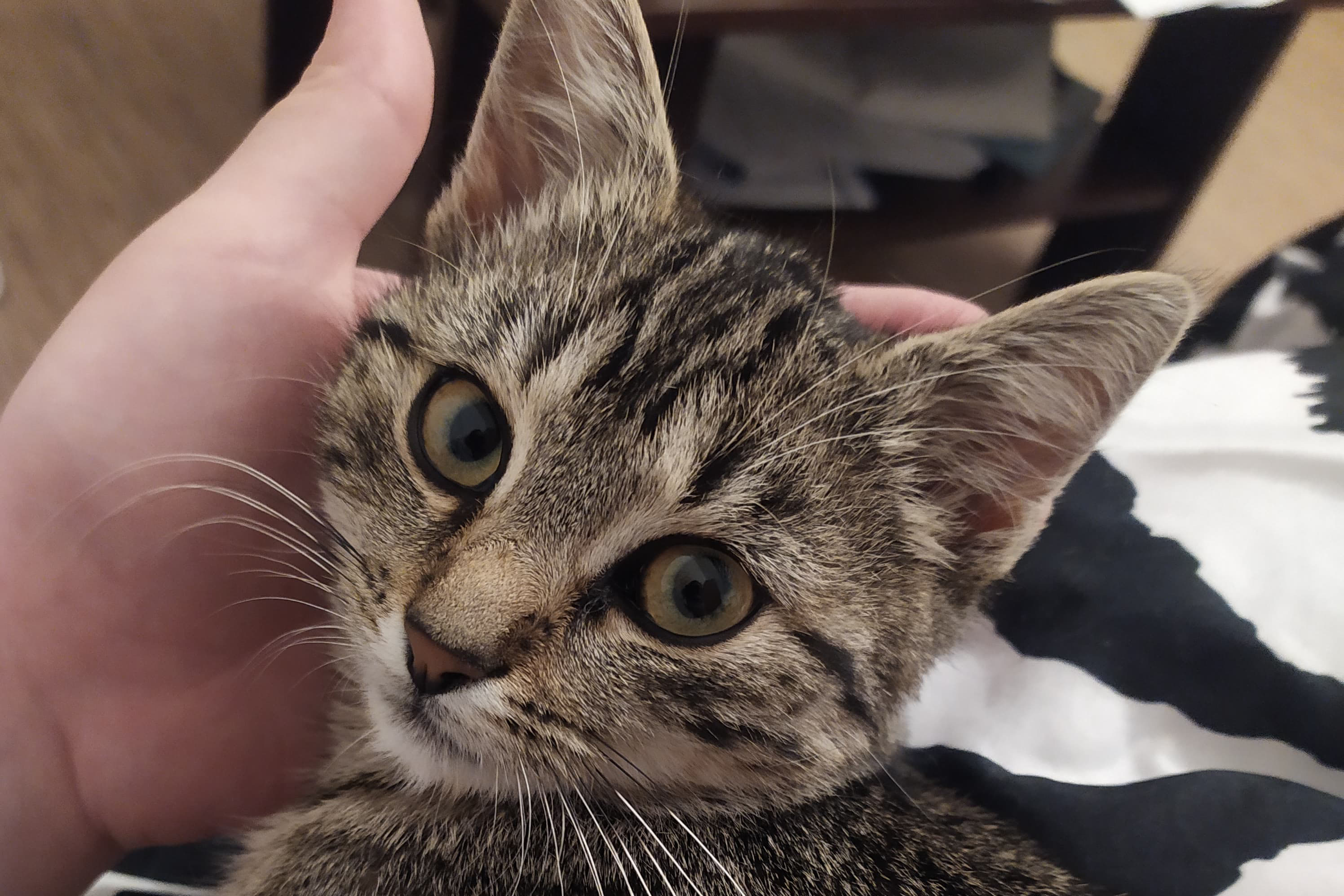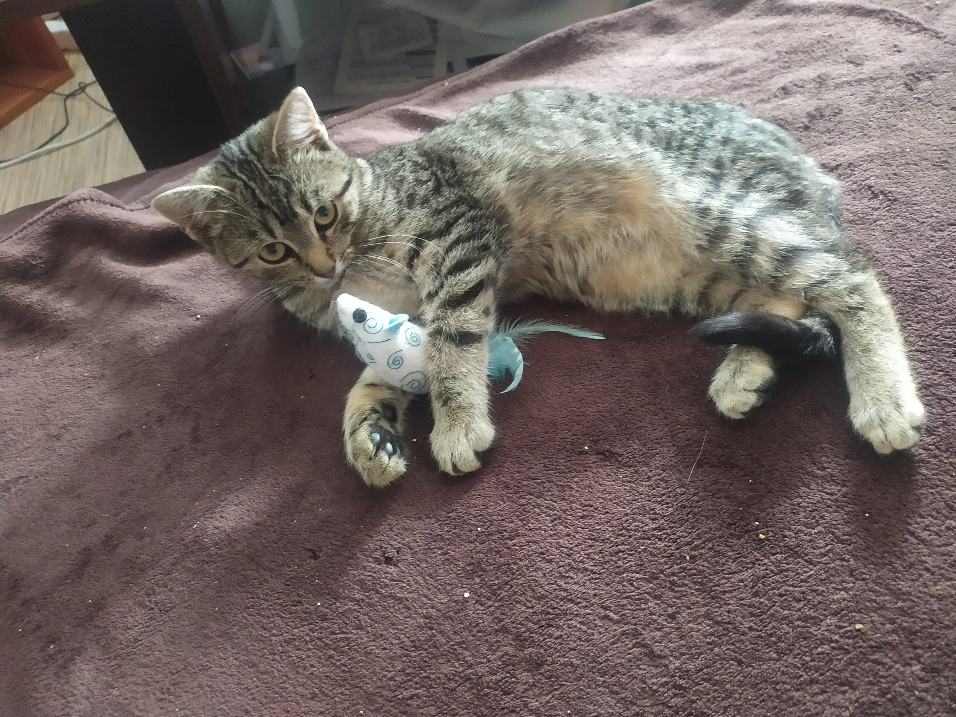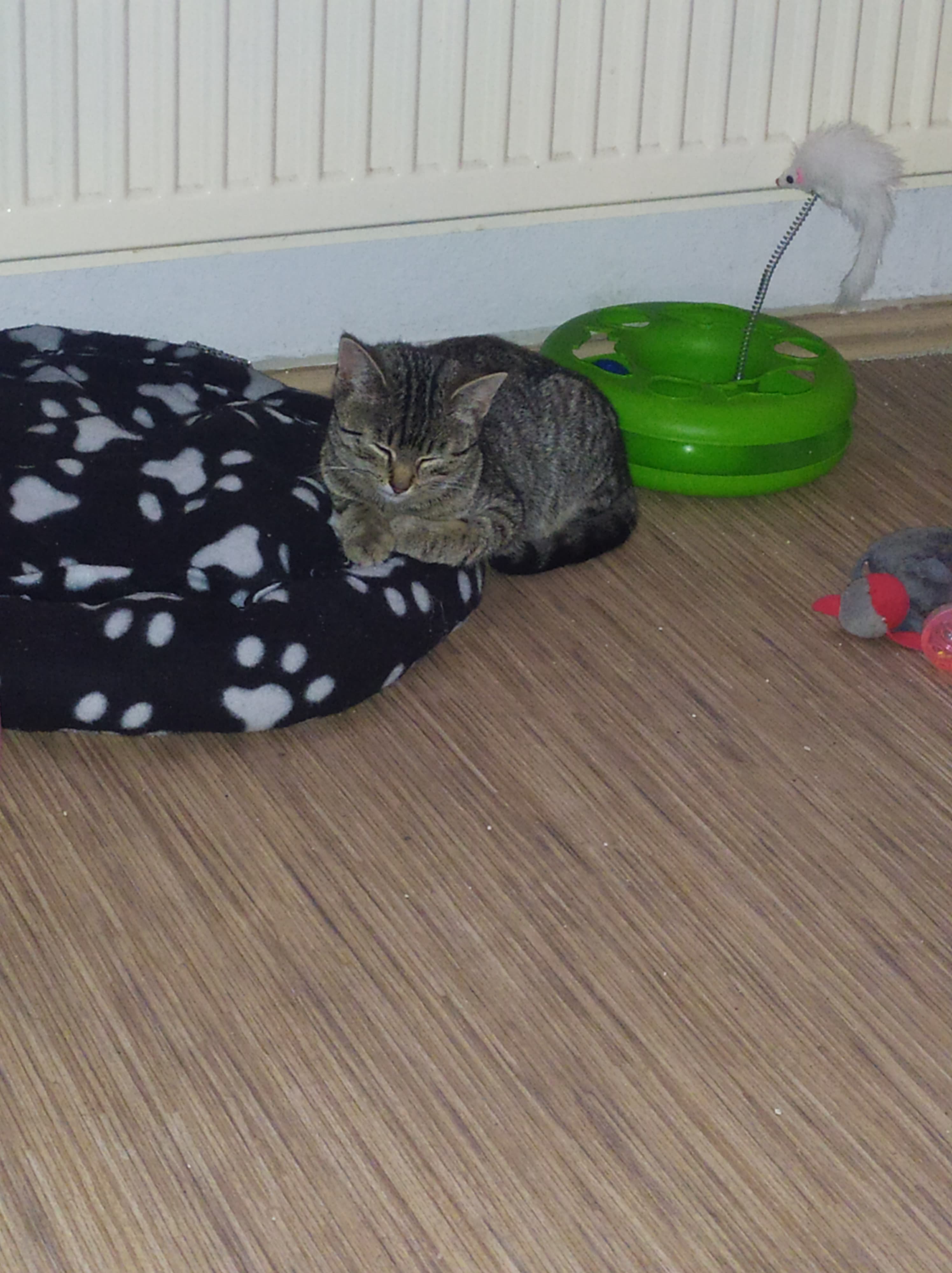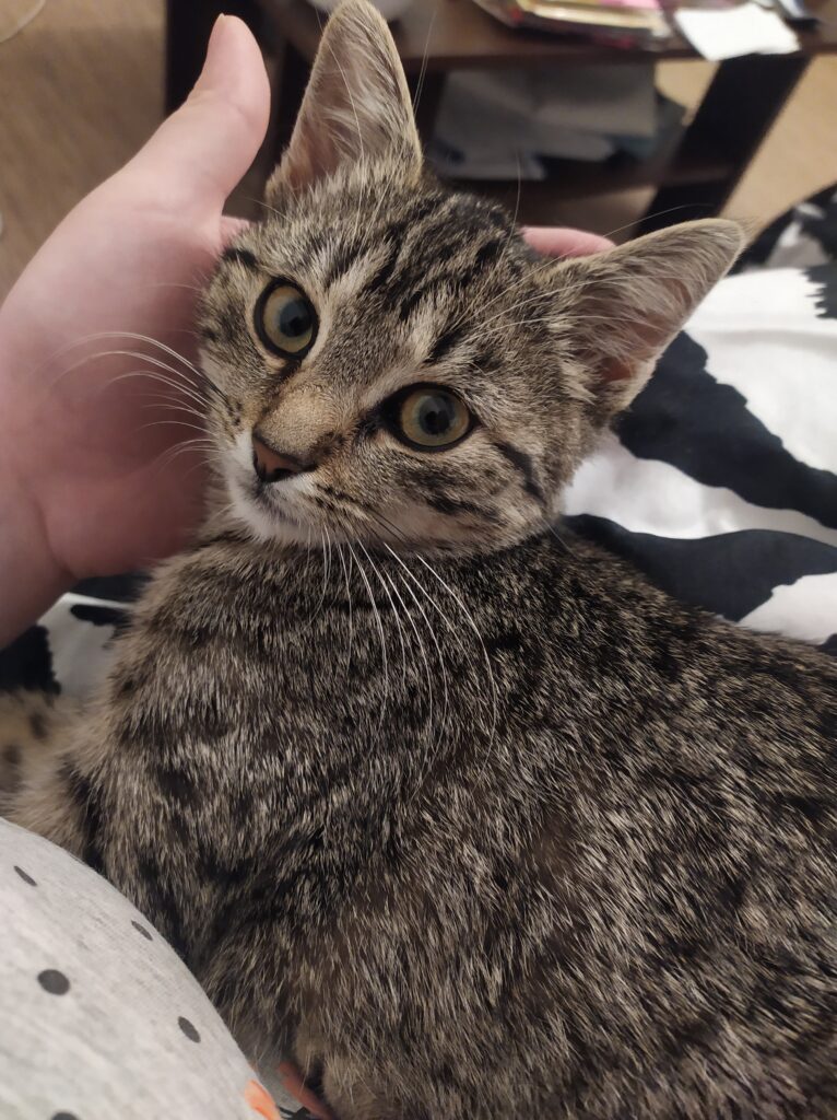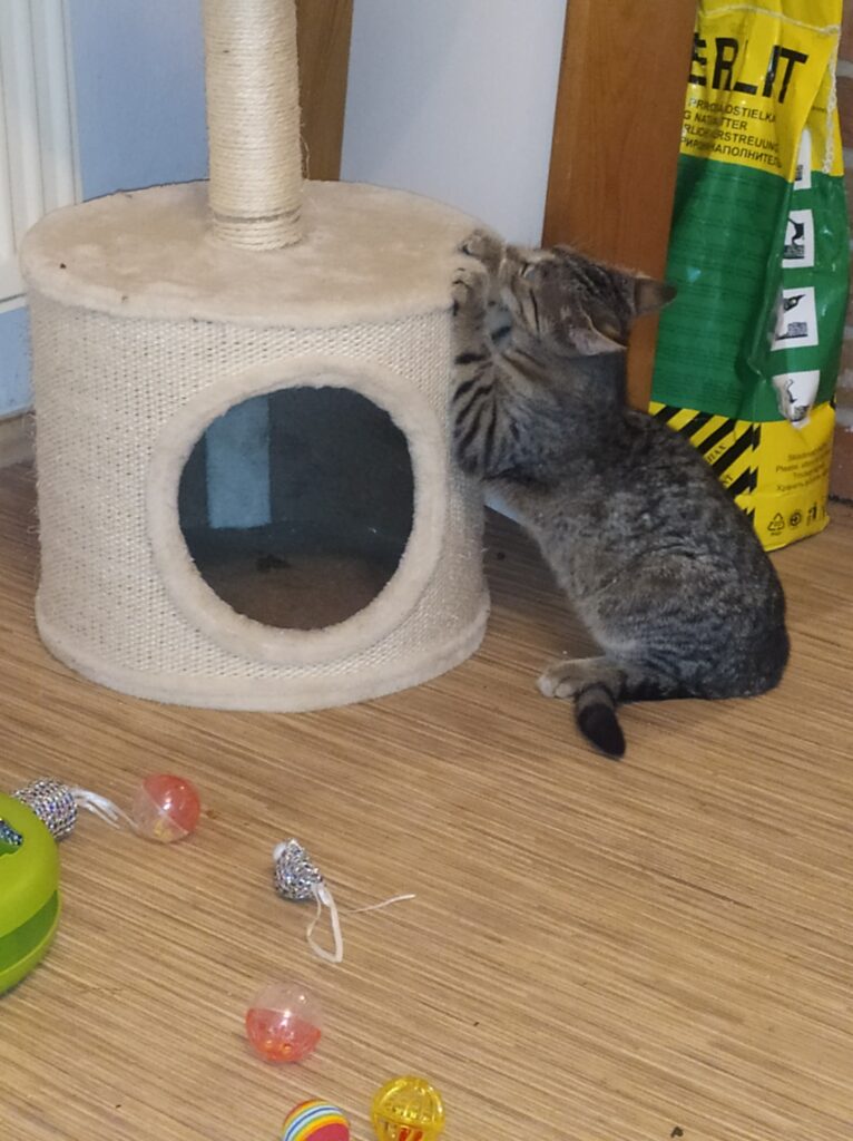 Teuška je úžasná mazlivá kočička, hezky si zvyká, už má prozkoumaný celý byt, který je jejím královstvím. Baští granulky, vařené masíčko a hezky chodí na záchodek. Když nespinká, tak lítá po bytě jak střela a hraje si s hračkama nebo se mazlí s paničkou. ❤️“