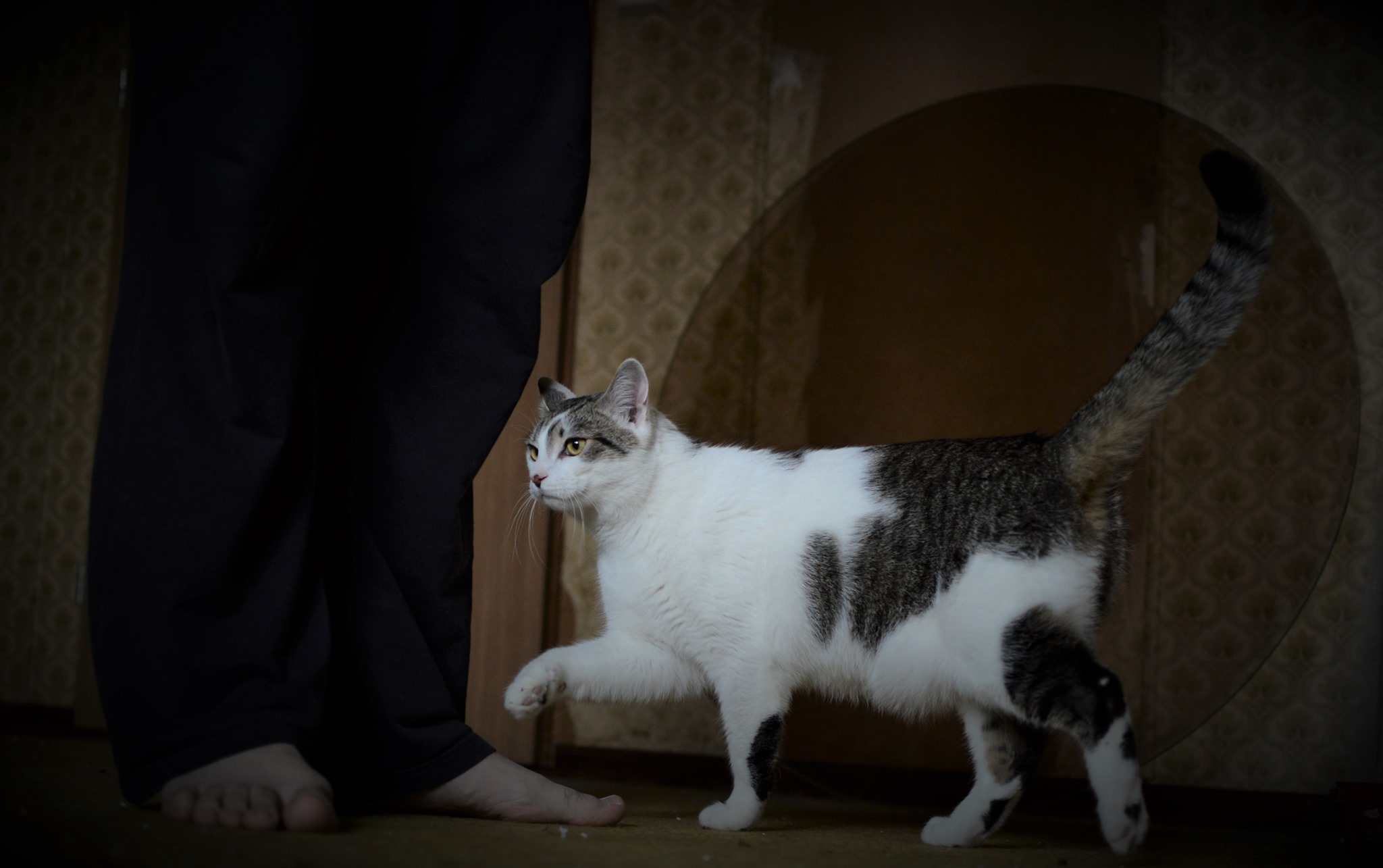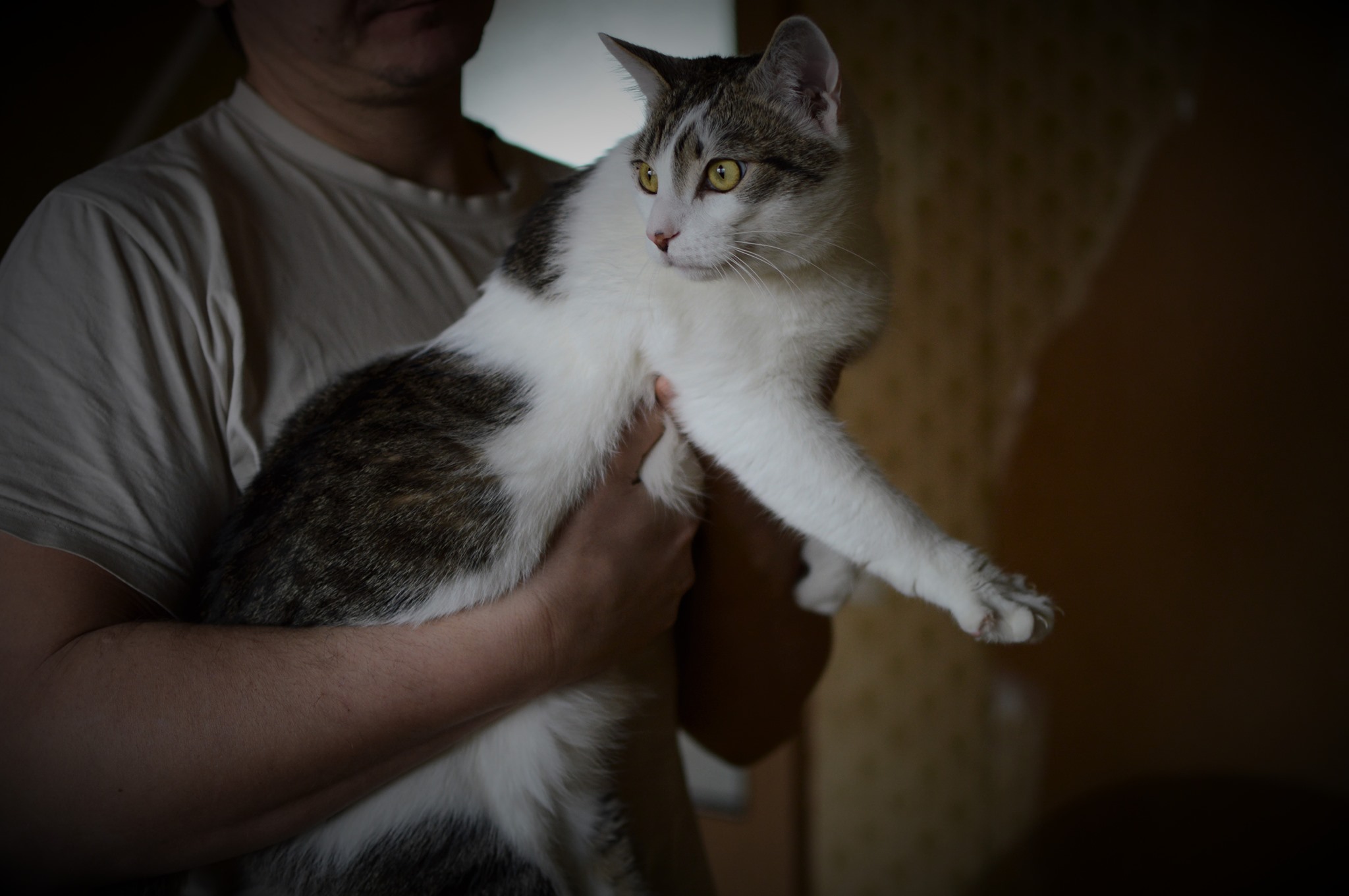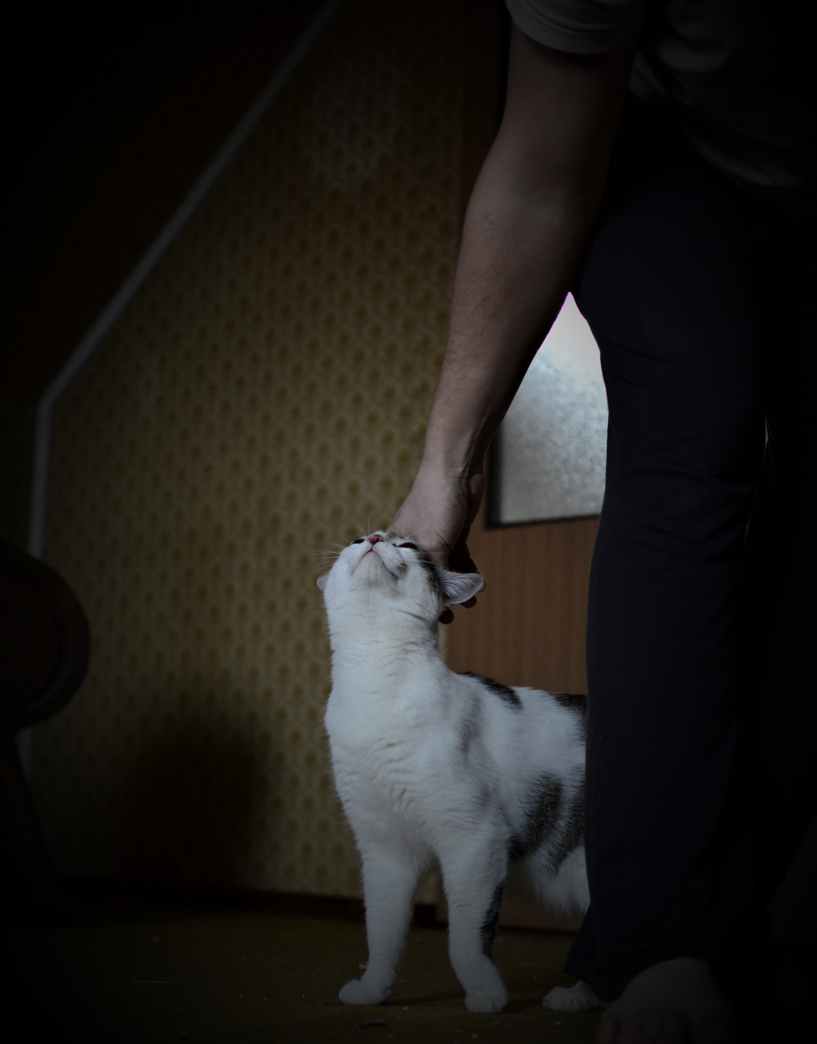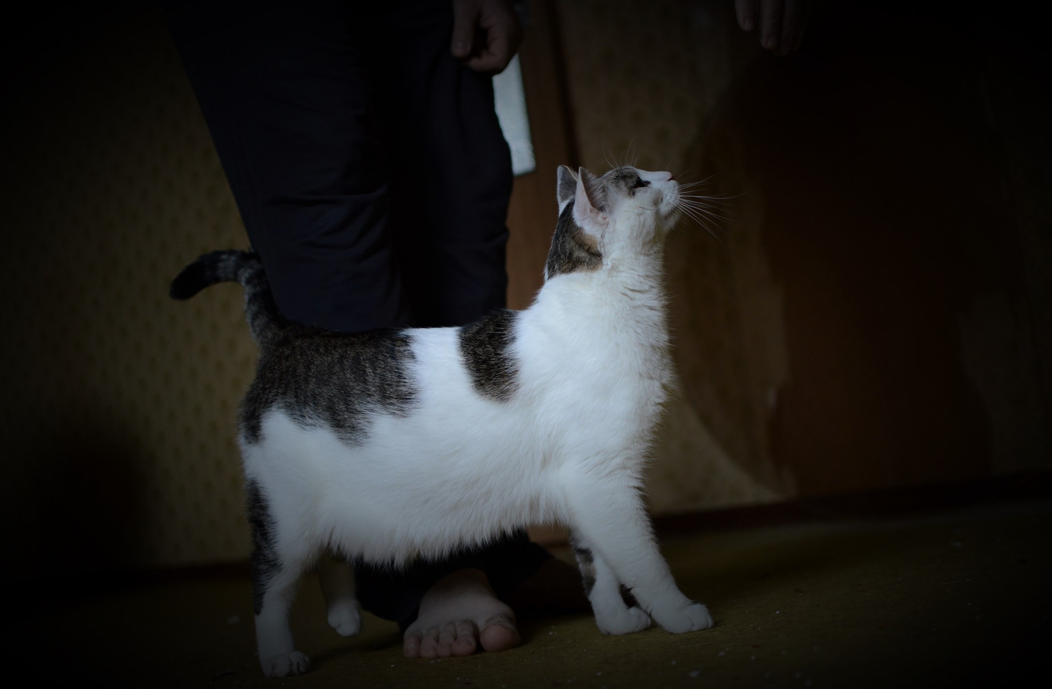 Když přijde táta z práce, Piškotek ho vítá za dveřmi svým vlastním rituálem – dlouze se protáhne a zívne, to asi aby taťka věděl, že naspáno už má dost a teď má nastat doba, kdy dostane něco dobrého na zub a pak už přijde hraní a mazlení. Uměl si to kluk chytrá dobře zařídit. 😄
