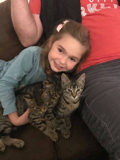 Narodili jsme se 10. 6. 2020. Naše maminka byla nalezena vedle nás třech, asi 5 denních miminek, mrtvá. Díky péči a velké starostlivosti jsme vyrostli ve zdravé a krásné kočičky. Sestřička již našla svou rodinu a my na tu naši ještě čekáme.