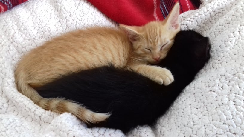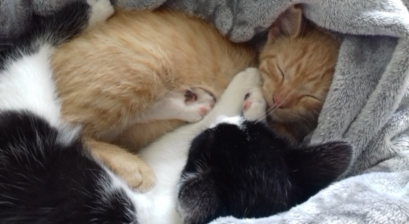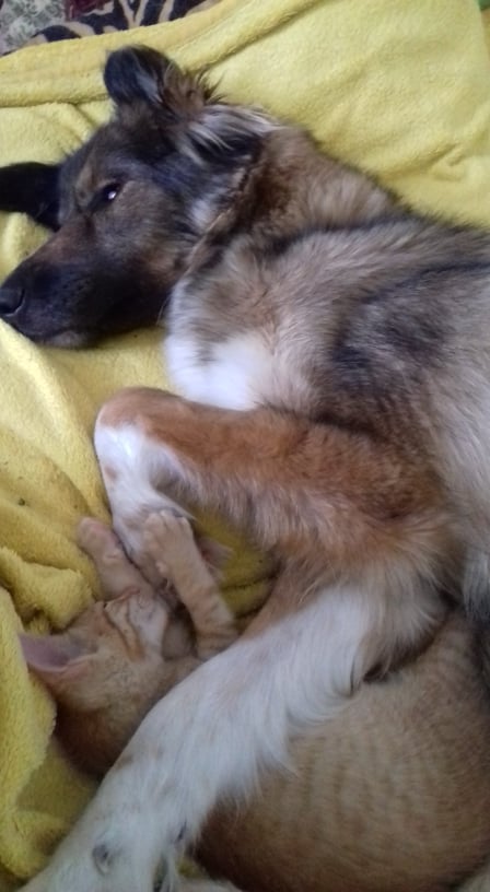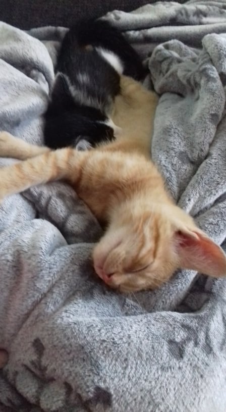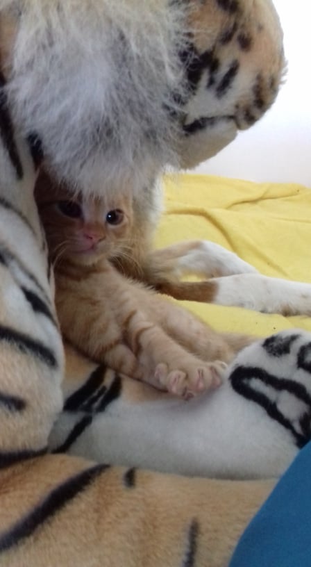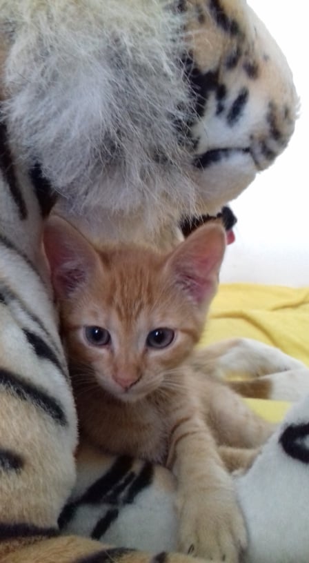 Malý zrzavý několikatýdenní kocourek našel štěstí a domov v úžasné rodině mladých lidí s kočičkami i pejsky.