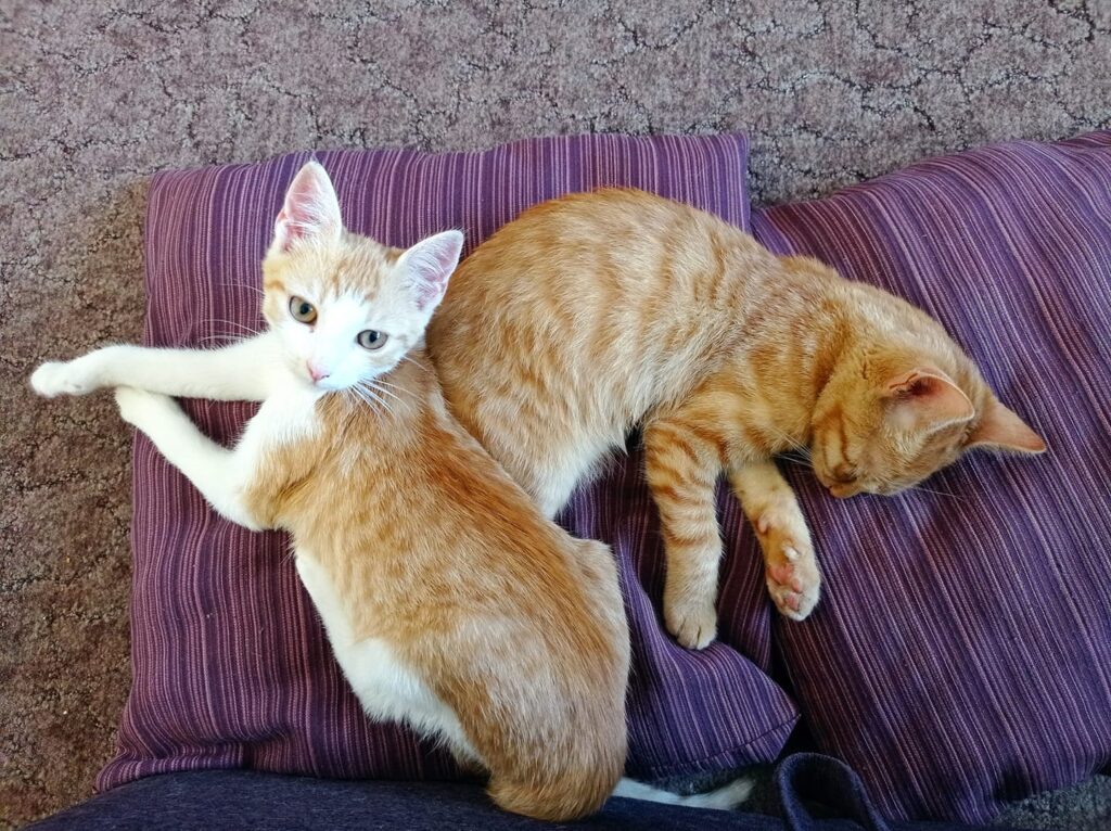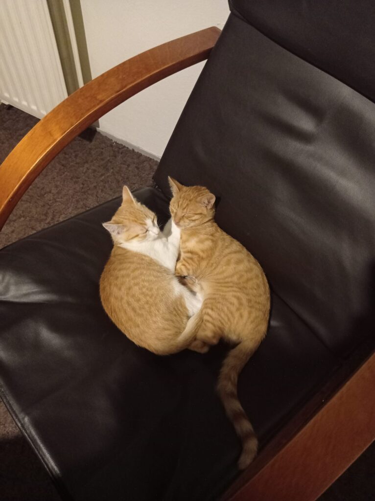 Máme k sobě přímo bratrský vztah, hrajeme si spolu, dovádíme jako správné kotěcí děti, chodíme si pro pomazlení a pak, za hlasitého vrnění, usínáme společně v posteli. 😻😻