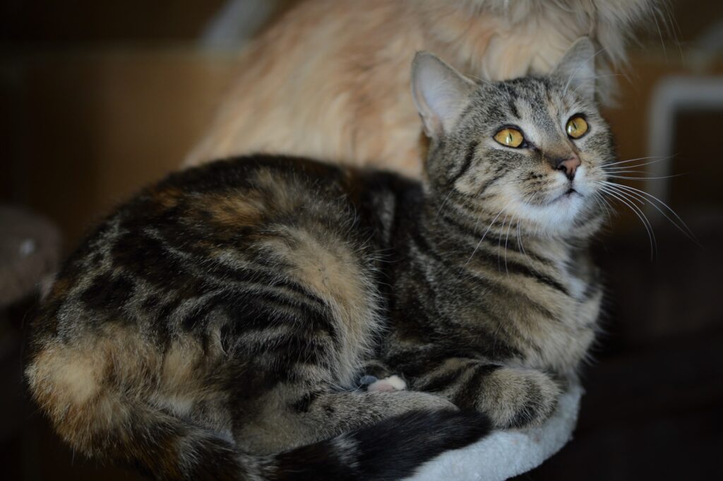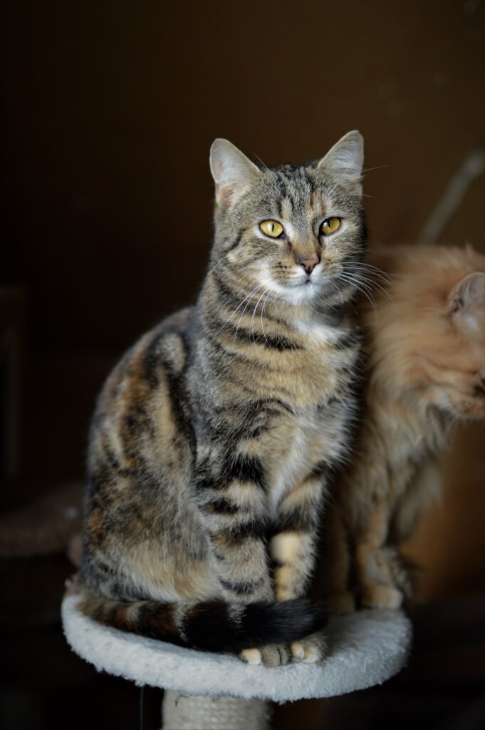 Kočičí parťáci mi vůbec nevadí, ba naopak bych byla za nějakého moc ráda. Jsem hodně submisivní a nekonfliktní. Ráda bych žila v bytě nebo domě, kde bych měla vyvýšené místo, kam bych si mohla vylézt, spokojeně chrupkat a pozorovat okolí. Mé srdce si rychle získáte přes pamlsky.